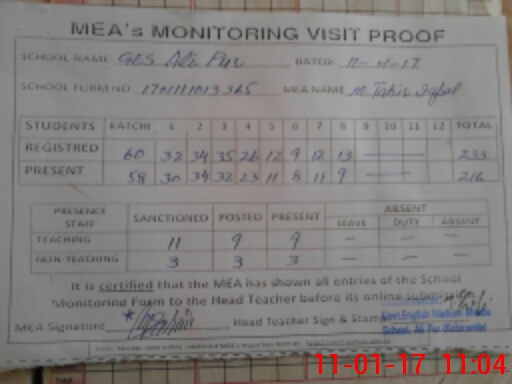 | EMIS Code: 36410187 | Name of School: GES ALI PUR, KABIRWALA | |||
