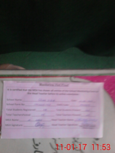 | Certified that this School was Inspected by the Undersigned MEA/DMO Today and the Information Stated Above is as Per Record. | |||||