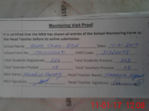 | EMIS Code: 31320075 | Name of School: GGHS CHAK NO. 83/A | |||