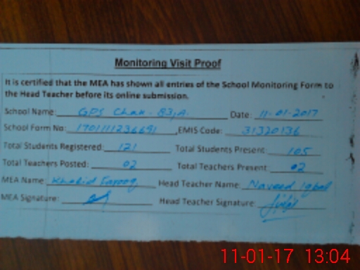 | EMIS Code: 31320136 | Name of School: GPS CHAK 83/A | |||