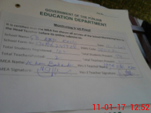 | Certified that this School was Inspected by the Undersigned MEA/DMO Today and the Information Stated Above is as Per Record. | |||||