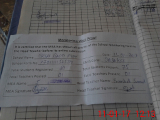 | Attendance Register | Head Teacher | MEA with School | Visit Proof |