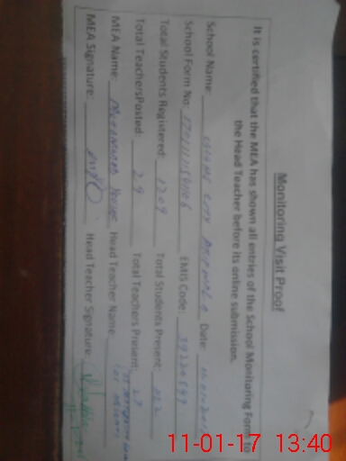 | Certified that this School was Inspected by the Undersigned MEA/DMO Today and the Information Stated Above is as Per Record. | |||||