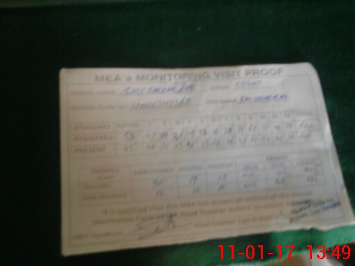 | Attendance Register | Head Teacher | MEA with School | Visit Proof |