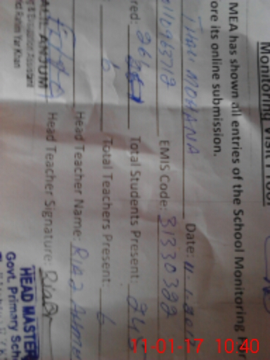 | Name: AH**** BU**** Designation: (School Headmaster's/Headmistress's) P S T Phone/Cell Number: 03**** |