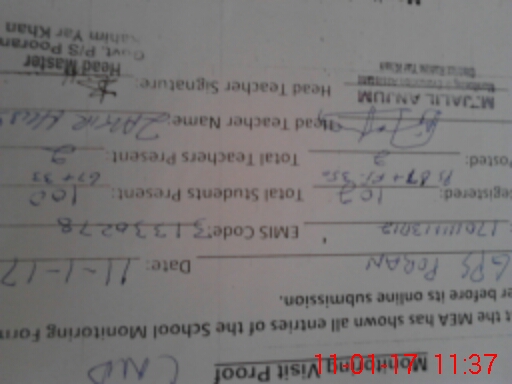 | Name: ZA**** HU**** Designation: (School Headmaster's/Headmistress's) PST/PTC/JV Phone/Cell Number: 03**** |