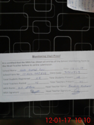 | Attendance Register | Head Teacher | MEA with School | Visit Proof |