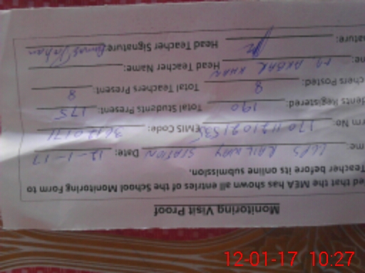 | Certified that this School was Inspected by the Undersigned MEA/DMO Today and the Information Stated Above is as Per Record. | |||||
