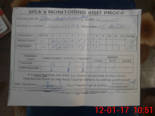 | Attendance Register | Head Teacher | MEA with School | Visit Proof |