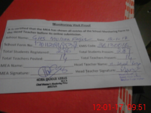 | EMIS Code: 36130016 | Name of School: GHS MULLAN FAQIR BUDHLA MULTAN | |||