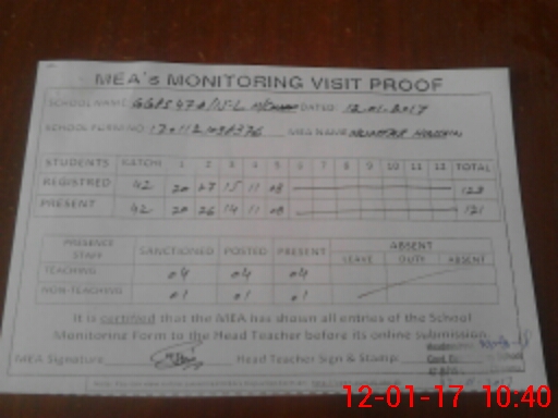 | Attendance Register | Head Teacher | MEA with School | Visit Proof |
