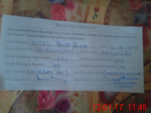 | Certified that this School was Inspected by the Undersigned MEA/DMO Today and the Information Stated Above is as Per Record. | |||||