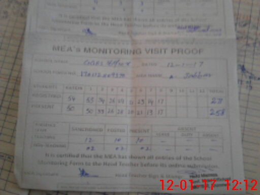 | Attendance Register | Head Teacher | MEA with School | Visit Proof |