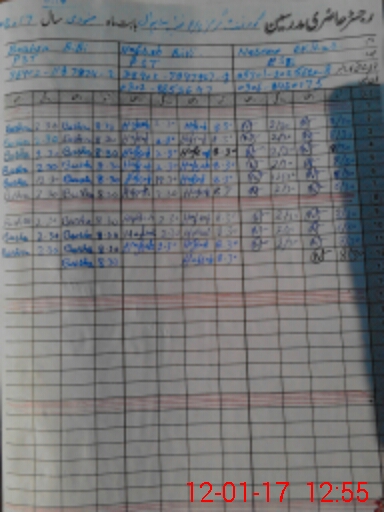 | CNIC | Full Name | Designation | R/C | Absence During Last Calender Month |