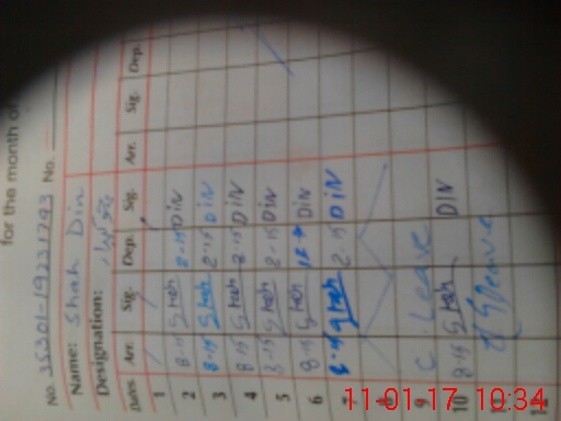 | CNIC | Full Name | Designation | R/C | Absence During Last Calender Month |