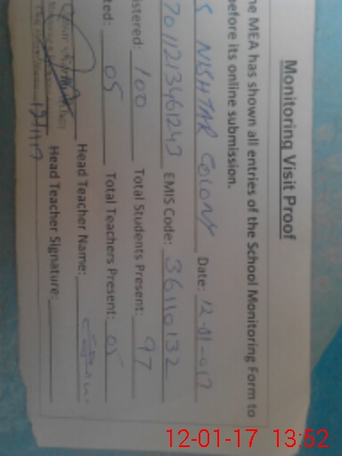 | EMIS Code: 36110132 | Name of School: GPS NISHTAR COLONY MULTAN | |||