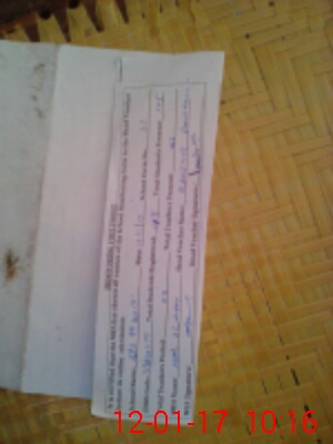 | Name: KA**** PE**** Designation: (School Headmaster's/Headmistress's) PTC/JV Phone/Cell Number: 03**** |