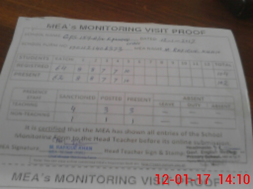 | Attendance Register | Head Teacher | MEA with School | Visit Proof |