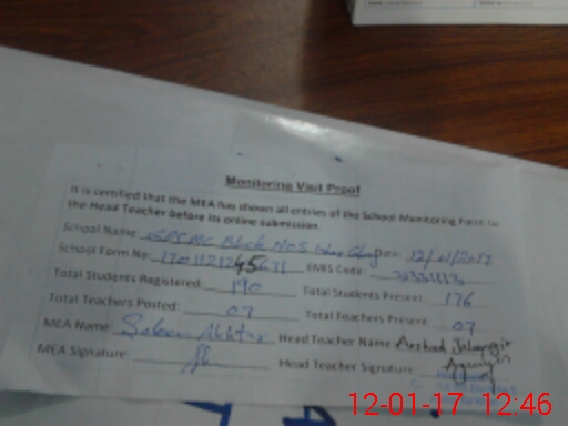 | EMIS Code: 31331113 | Name of School: GPS MC BLOCK NO. 5 INHAR COLONY | |||