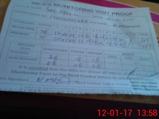 | Attendance Register | Head Teacher | MEA with School | Visit Proof |