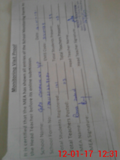 | Attendance Register | Head Teacher | MEA with School | Visit Proof |
