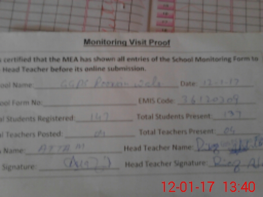 | Attendance Register | Head Teacher | MEA with School | Visit Proof |