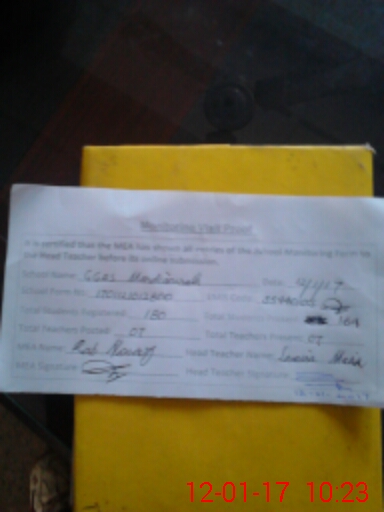 | Attendance Register | Head Teacher | MEA with School | Visit Proof |