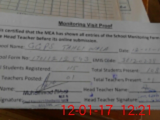 | Attendance Register | Head Teacher | MEA with School | Visit Proof |
