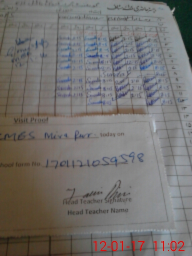 | Attendance Register | Head Teacher | MEA with School | Visit Proof |