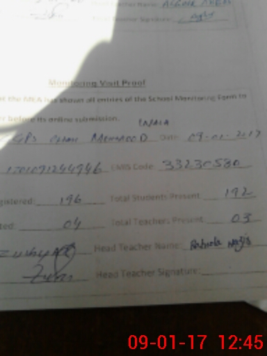 | Attendance Register | Head Teacher | MEA with School | Visit Proof |