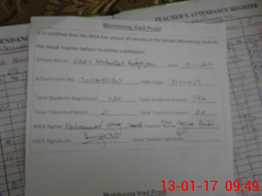 | Attendance Register | Head Teacher | MEA with School | Visit Proof |