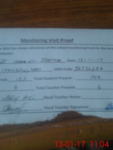 | Attendance Register | Head Teacher | MEA with School | Visit Proof |
