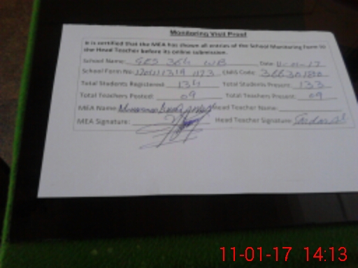 | Attendance Register | Head Teacher | MEA with School | Visit Proof |