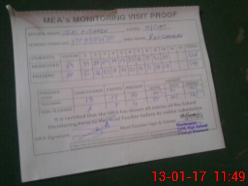 | Attendance Register | Head Teacher | MEA with School | Visit Proof |