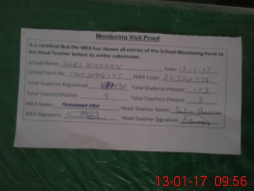 | Certified that this School was Inspected by the Undersigned MEA/DMO Today and the Information Stated Above is as Per Record. | |||||