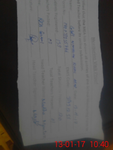 | Certified that this School was Inspected by the Undersigned MEA/DMO Today and the Information Stated Above is as Per Record. | |||||