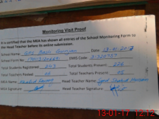 | Certified that this School was Inspected by the Undersigned MEA/DMO Today and the Information Stated Above is as Per Record. | |||||