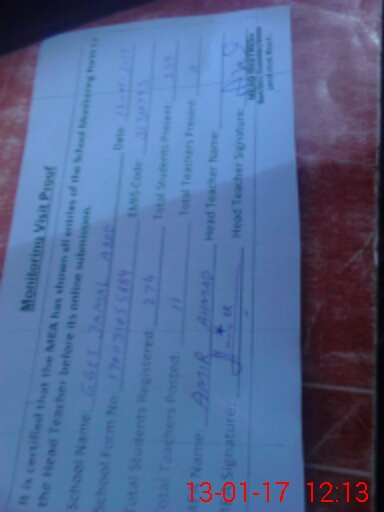 | Attendance Register | Head Teacher | MEA with School | Visit Proof |