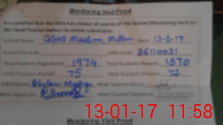 | Attendance Register | Head Teacher | MEA with School | Visit Proof |