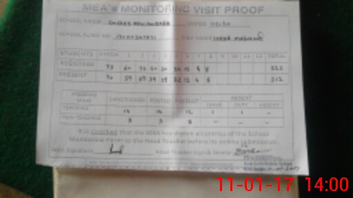 | Attendance Register | Head Teacher | MEA with School | Visit Proof |