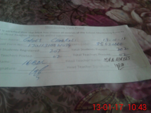 | Attendance Register | Head Teacher | MEA with School | Visit Proof |