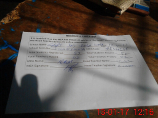 | Attendance Register | Head Teacher | MEA with School | Visit Proof |