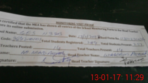 | Attendance Register | Head Teacher | MEA with School | Visit Proof |