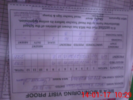 | Monitoring Date: 14-01-2017 | Start Time: 14-01-2017 08:53 AM | End Time: 14-01-2017 10:35 AM | Name of MEA: SH**** AH**** | |