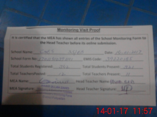 | EMIS Code: 39220185 | Name of School: GHS 35 EB ARIFWALA | |||