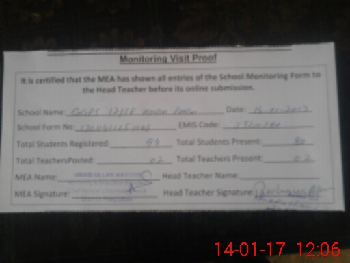 | Certified that this School was Inspected by the Undersigned MEA/DMO Today and the Information Stated Above is as Per Record. | |||||