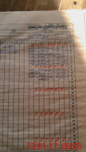 | CNIC | Full Name | Designation | R/C | Absence During Last Calender Month |