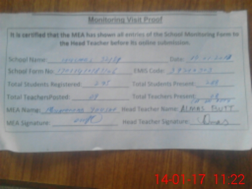 | Certified that this School was Inspected by the Undersigned MEA/DMO Today and the Information Stated Above is as Per Record. | |||||
