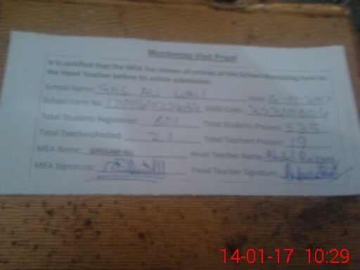 | EMIS Code: 32310004 | Name of School: GHS ALI WALI | |||