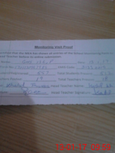 | Attendance Register | Head Teacher | MEA with School | Visit Proof |